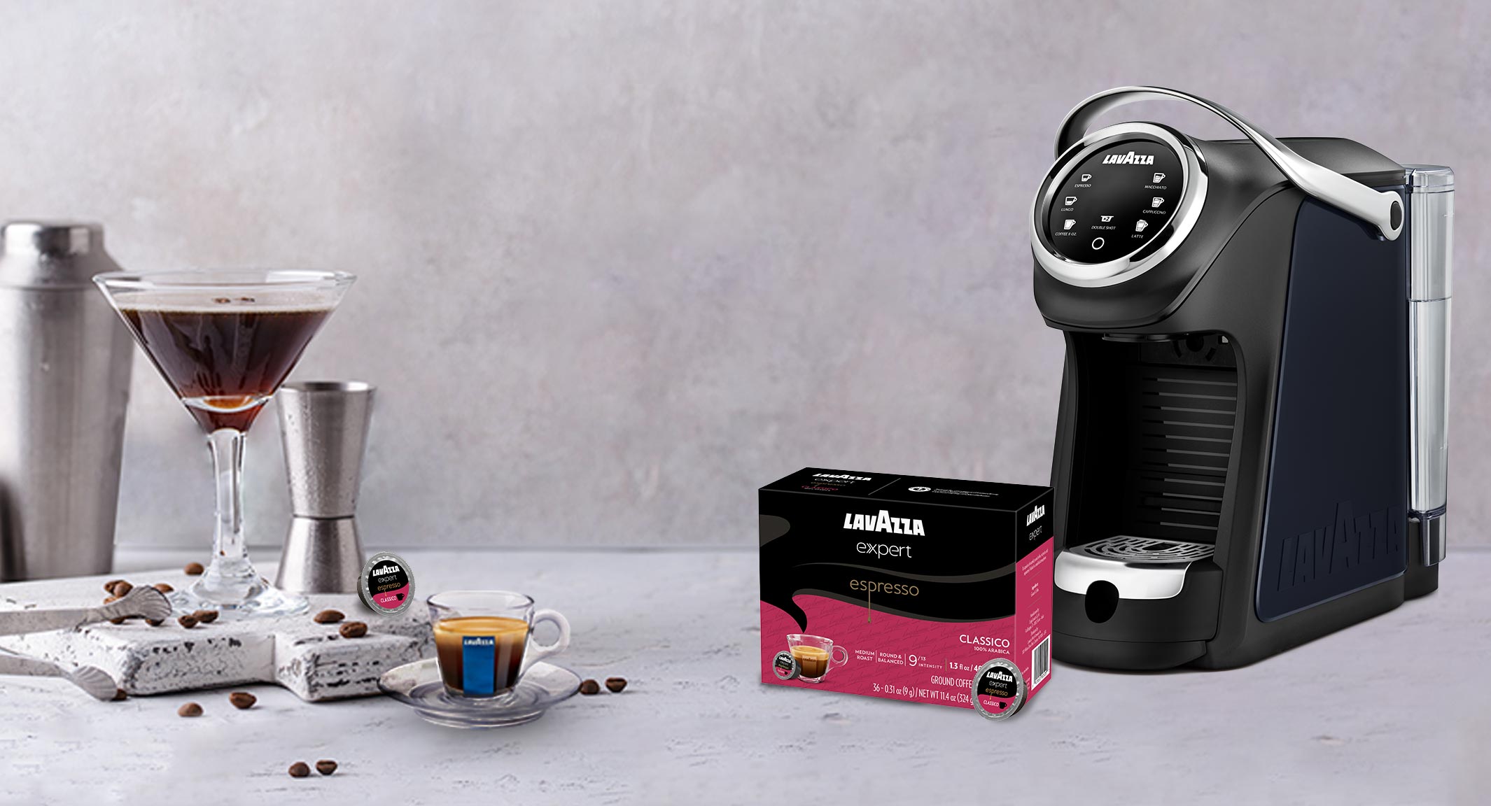 From at-home barista to kitchen-counter bartender. Enjoy the versatility of the Lavazza Classy Plus from day to night by indulging in a delightful Espresso Martini, brewed with your favorite Expert Capsules.