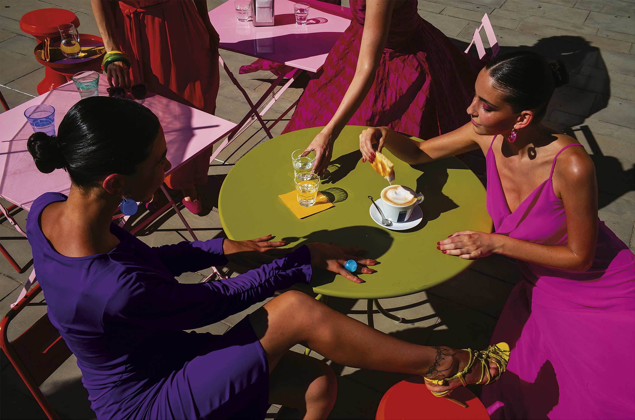 Comenzó un ritual: sorber, remojar, morder y repetir. La masa, muy suave, ligera e impalpable, se fundía con la espuma de la leche en una unión perfecta. Para las chicas, este era el momento más preciado del día; cada mañana llegaban en masa, convirtiendo la piazzetta en un hermoso estudio de poesía y emoción cándida y desinhibida.